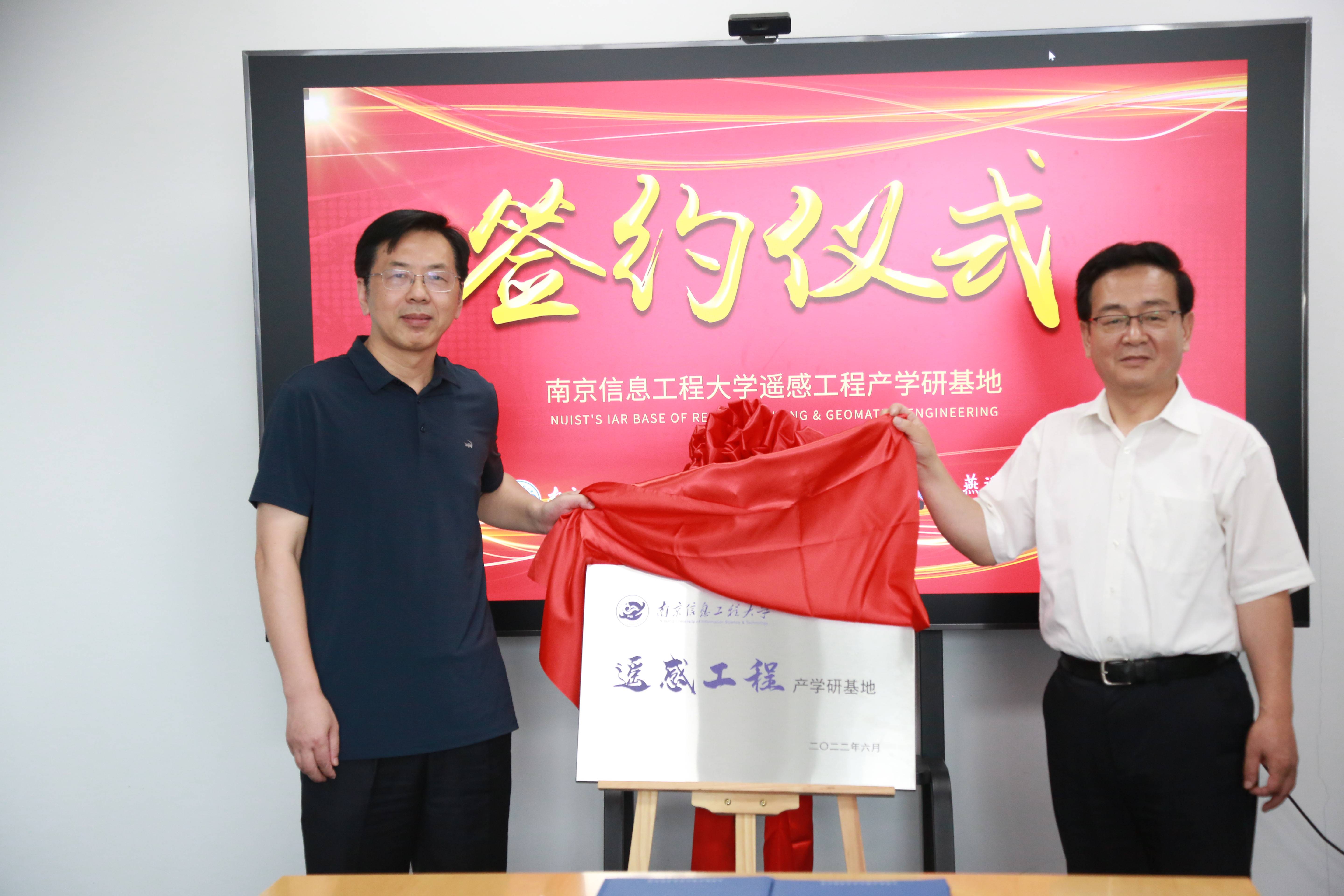2022年6月30日,南京信息工程大學遙感與測繪工程學院書記耿小雷、院長祝善友一行赴飛燕遙感就人才培養和科學研究校企合作相關事宜進行交流,并邀請了省測繪地理信息學會秘書長陳洪良、副理事長李明峰見證實踐教育基地的簽約與揭牌。飛燕遙感董事長趙武、總經理趙梓言及骨干團隊代表參加交流。
