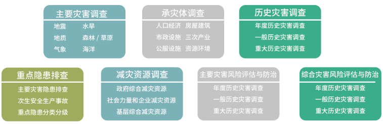 為貫徹落實中央財經委關于提高自然災害防治能力的部署要求,加快推進災害風險調查和重點隱患排查工程的實施,由應急部牽頭,會同自然資源部、生態環境部、住房和城鄉建設部、交通運輸部、水利部、中國氣象局、中國地震局、國家林業和草原局等10個部門開展全國災害綜合風險普查工作,主要涉及地震災害、地質災害、水旱災害、森林和草原火災、氣象災害以及海洋災害等六種災害的普查、重點隱患排查和各項評估與區劃工作。