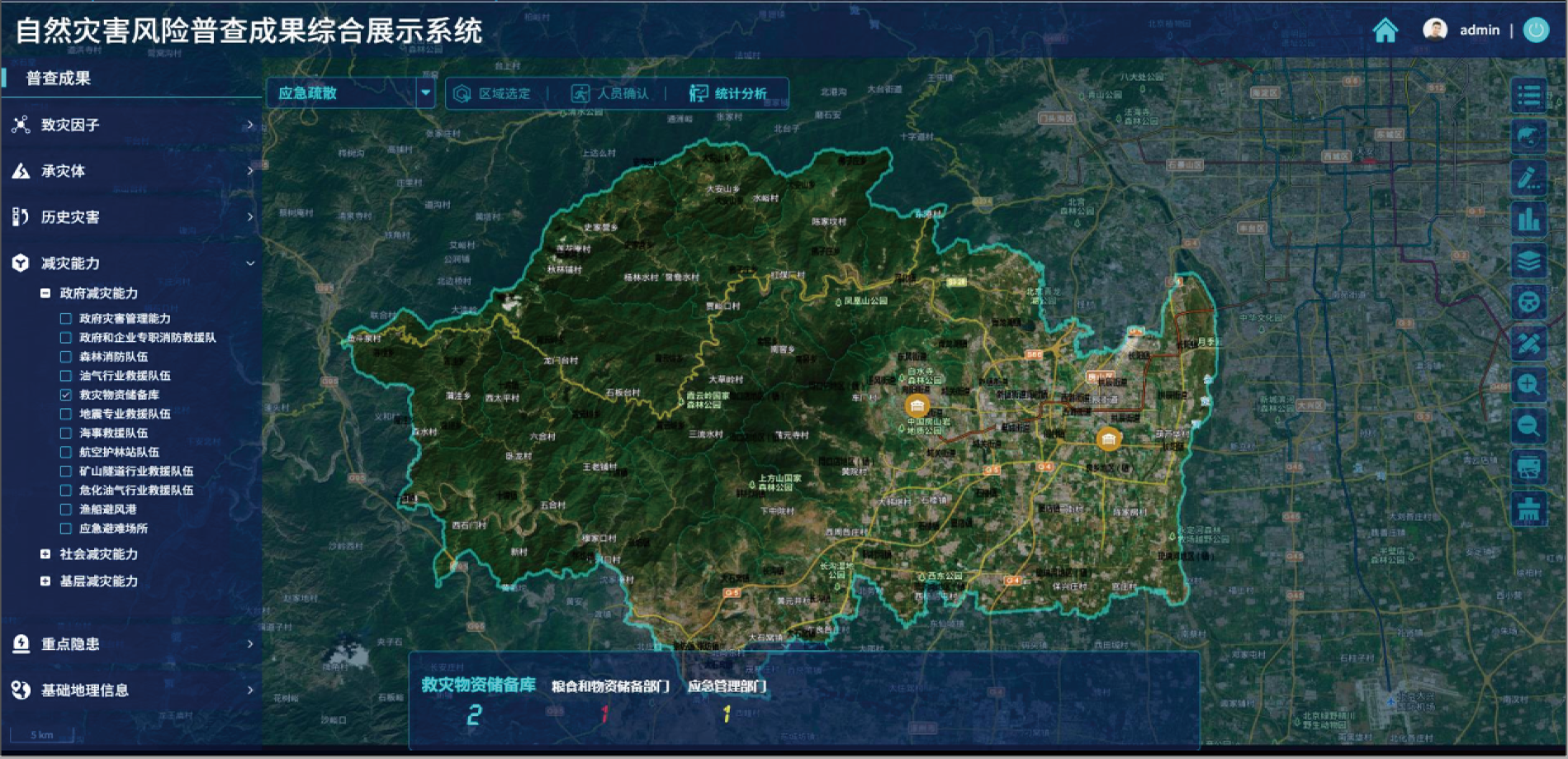 自然災害風險普查成果綜合展示平臺包含致災因子、承災體、歷史災害、減災能力、重點隱患等專題,解決各類二三維普查數據存儲管理、共享交互、動態展示、空間分析等問題,實現風險要素信息化、普查數據可視化、決策分析智能化。