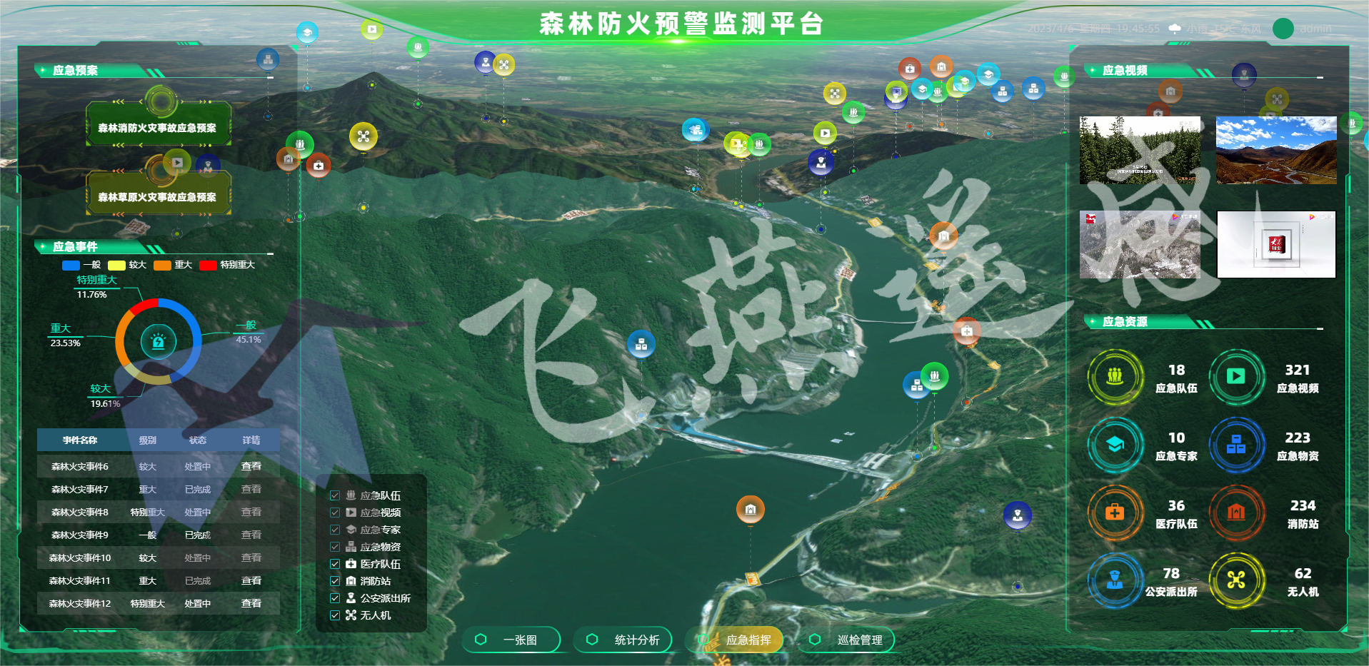 在智慧林業領域,該平臺基于數字孿生三維技術,采用物聯網、云計算、人工智能、無人機自主巡檢、數據監測等技術手段,圍繞森林防火預警監測、森林資源信息管理、巡護員信息管理、無人機管理等不同場景打造相應的智慧應用,形成林業智慧化運營管理平臺,滿足PC、平板以及手機等多終端流暢展示,實現智慧林業應用。