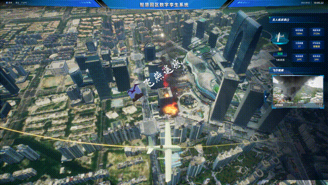 (2)智能聯(lián)動(dòng),園區(qū)火警觸發(fā)三維地圖自動(dòng)標(biāo)定火源坐標(biāo),同步調(diào)度巡邏車輛、視頻監(jiān)控、無(wú)人機(jī)等實(shí)施偵察,實(shí)時(shí)回傳火情態(tài)勢(shì),強(qiáng)化應(yīng)急響應(yīng)時(shí)效性。
