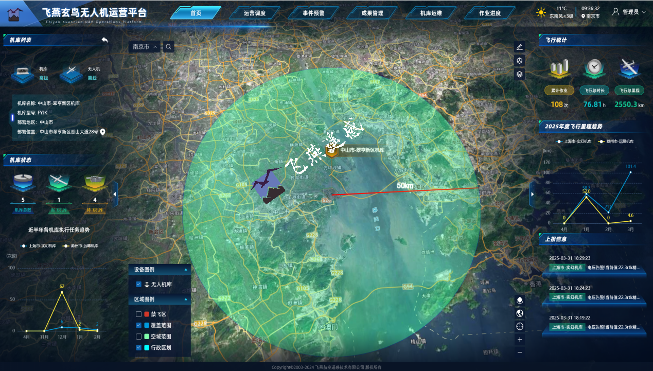 50公里超長(zhǎng)作業(yè)半徑,單臺(tái)機(jī)庫(kù)可巡查整片園區(qū)范圍。