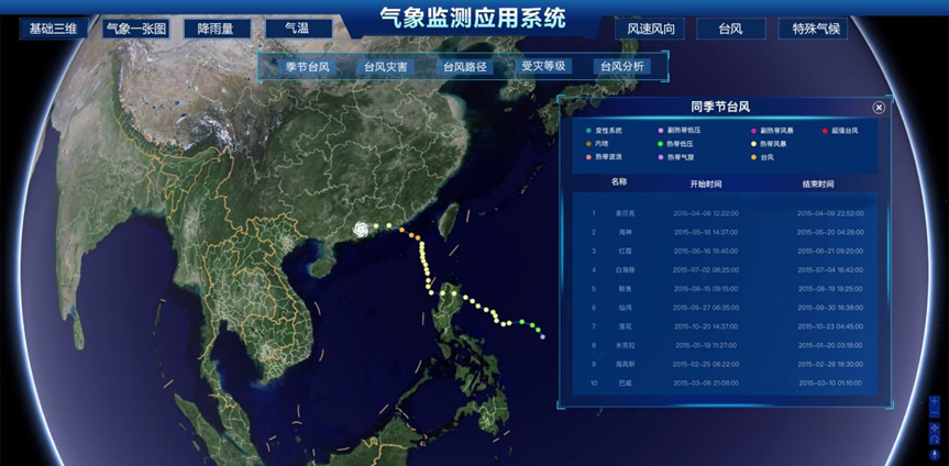 通過三維GIS技術(shù),結(jié)合氣象數(shù)據(jù)、區(qū)域地形、河網(wǎng)等信息,構(gòu)建氣象監(jiān)測預(yù)警系統(tǒng)。基于氣象因素動態(tài)分析,科學(xué)預(yù)測區(qū)域內(nèi)水域、水利受影響范圍及程度。針對極端天氣,例如臺風(fēng),系統(tǒng)會錄入臺風(fēng)的運(yùn)動軌跡與時(shí)間信息,預(yù)測臺風(fēng)登陸的時(shí)間地點(diǎn),適時(shí)發(fā)出預(yù)警信息。