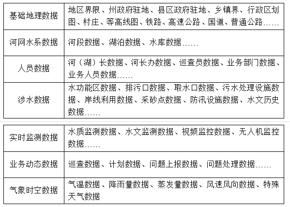 數(shù)據(jù)層是平臺需要的數(shù)據(jù)類型,主要包括基礎(chǔ)地理數(shù)據(jù)、河網(wǎng)水系數(shù)據(jù)、人員數(shù)據(jù)、涉水?dāng)?shù)據(jù)、實(shí)時(shí)監(jiān)測數(shù)據(jù)、業(yè)務(wù)動態(tài)數(shù)據(jù)、氣象時(shí)空數(shù)據(jù)等。